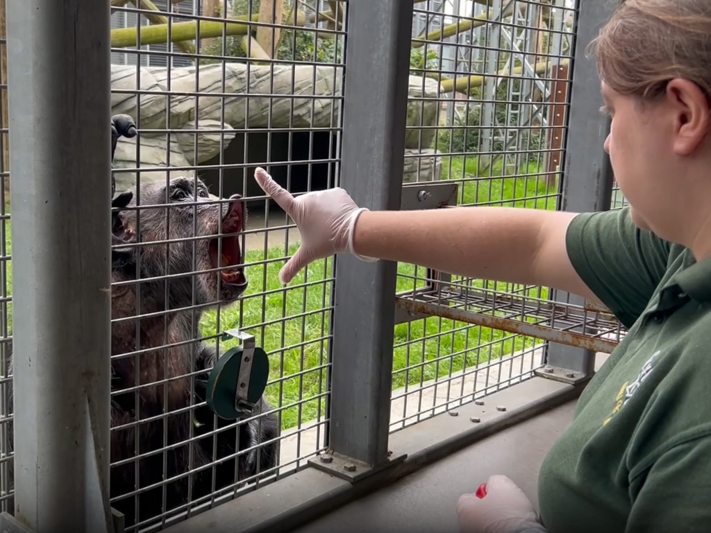 Our oldest chimpanzee, Tara, celebrated her 40th birthday on 8th October! To mark this special milestone, the Animal Care Team carried out a birthday training session filled with Tara’s favourite tasty treats. These training sessions help the team carry out regular health checks.